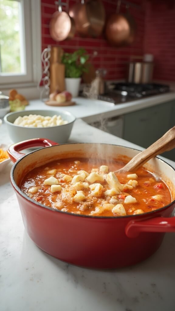 - Add cubed cream cheese and stir continuously until completely melted. Critical: Keep the heat at medium-low to prevent the cream cheese from seizing up.