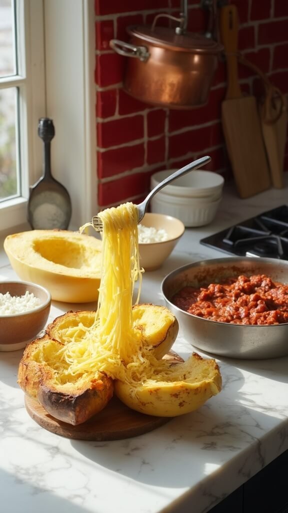 Turns out, when you roast spaghetti squash properly and pair it with a rich, savory meat sauce, you get something that’s not trying to be pasta – it’s better.
