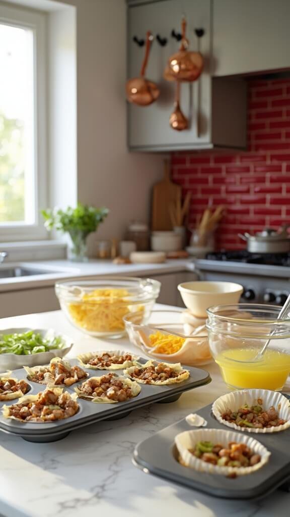 6. Sprinkle cheese and green onions over each cup, creating an even distribution.