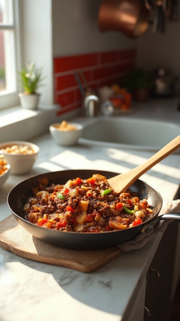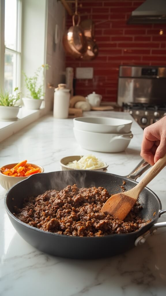 - Protein swaps: Try ground turkey, chicken, or crumbled tofu