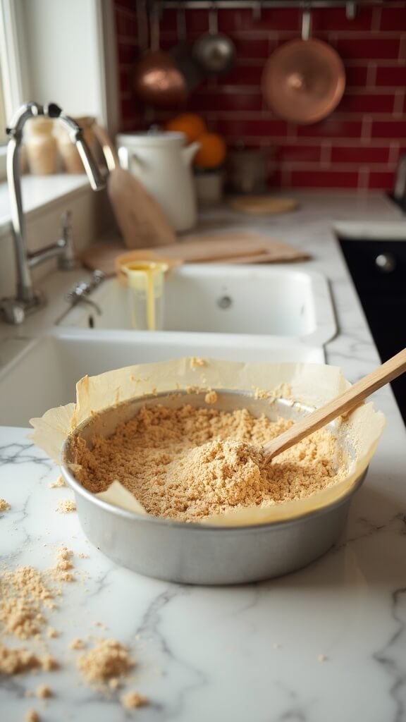- Make the crust first. Mix almond flour, granulated erythritol, melted butter, egg, and pumpkin pie spice until it looks like wet sand. Press firmly into your prepared pan.