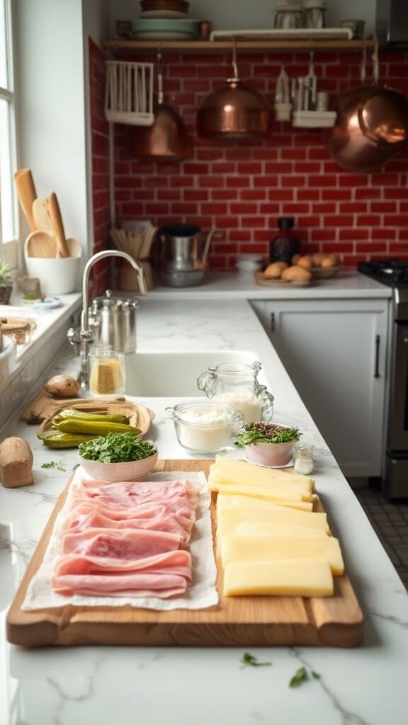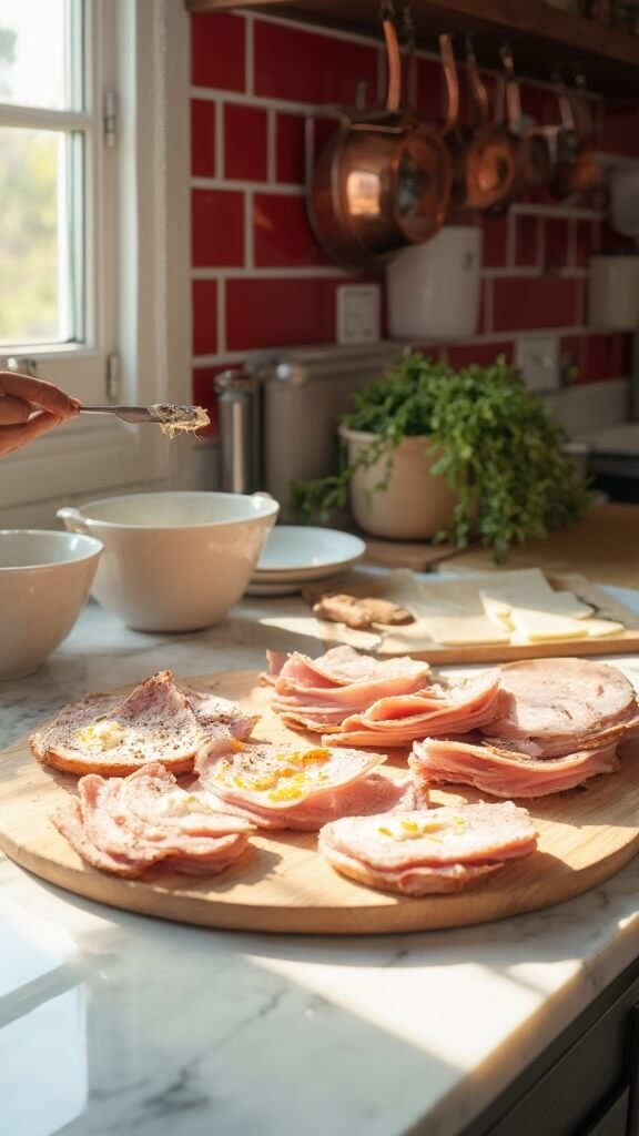 1. Prep your workspace. Lay out ham slices on a clean cutting board.