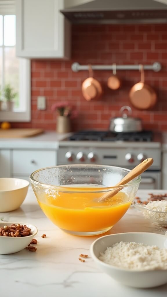 - Combine all dry ingredients in separate bowl. Whisk together to eliminate lumps.
