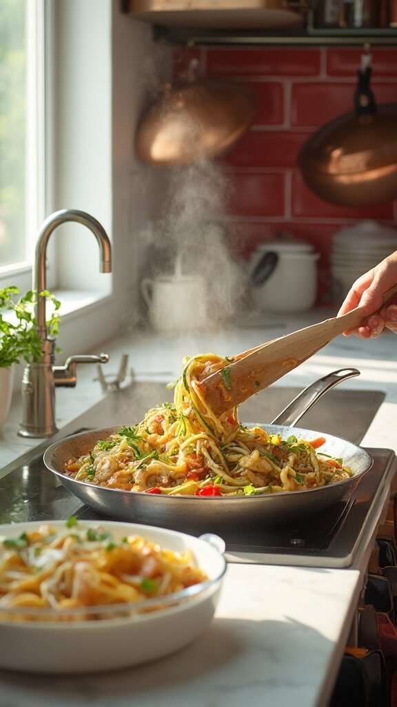 Add zucchini noodles to the pan with vegetables. Toss for 2-3 minutes until just tender – they should still have bite. Pour in your prepared sauce and toss everything together. Visual cue: Noodles should be glossy and well-coated, not swimming in sauce.
