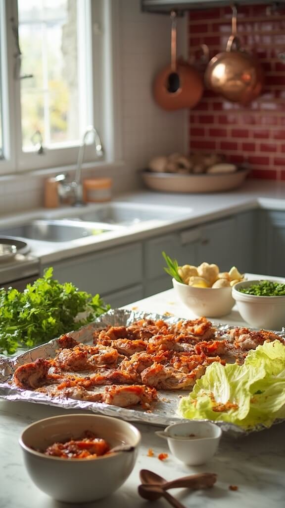 - Spread shredded pork on the baking sheet in a single layer. Drizzle with 2-3 tablespoons of those strained juices.